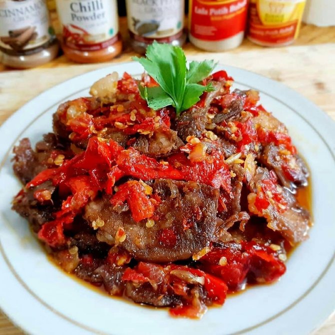 Dendeng Batokok, makanan khas Minangkabau, terkenal dengan daging kering berasa gurih dan renyah, disajikan dengan rempah khas yang menggoda selera.